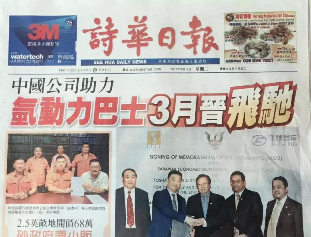 飞驰汽车和马来西亚的合作最早于2018年9月11日被披露,当时马来西亚砂拉越经济发展公司与中国佛山飞驰汽车制造有限公司就氢燃料电池客车的供应和交付签署了谅解备忘录。双方代表分别是SEDC总经理Soedirman Aini和佛山飞驰总经理江勇。