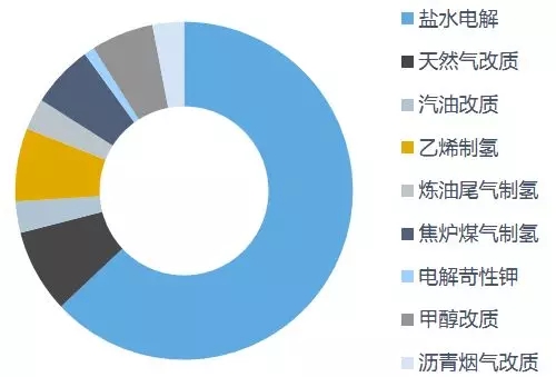 目前,制备氢气的几种主要方式包括氯碱工业副产氢、电解水制氢、化工原料制氢(甲醇裂解、乙醇裂解、液氨裂解等)、石化资源制氢(石油裂解、水煤气法等)和新型制氢方法(生物质、光化学等)。