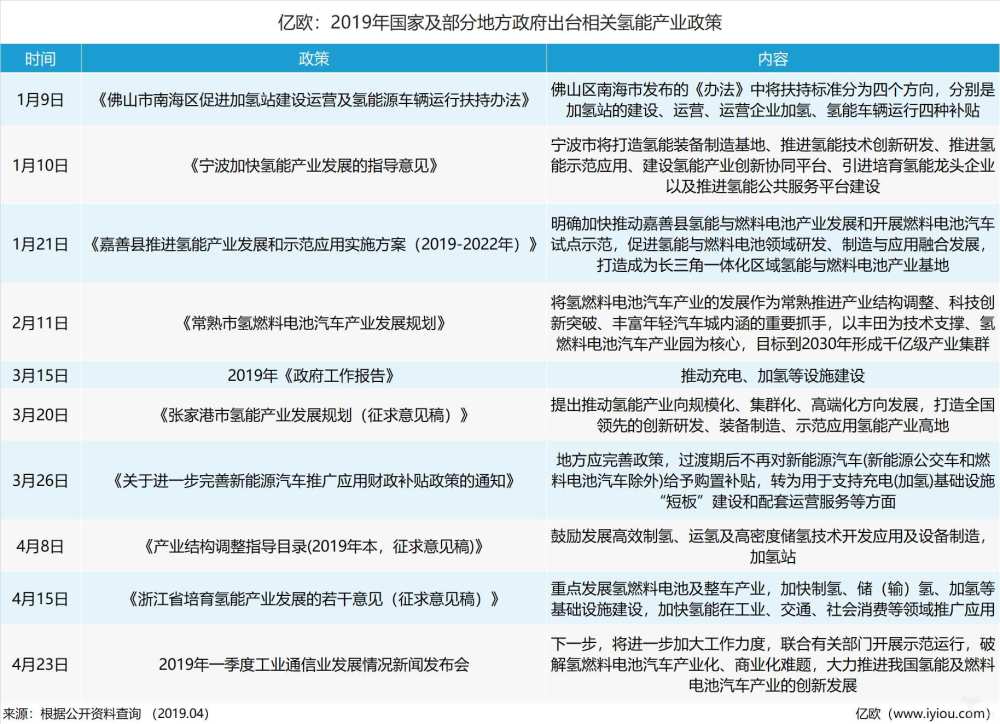 在2019年两会上,政府工作报告首次提出“推动加氢等设施建设”,表明中国愿意推动包括氢能源在内的技术进步。