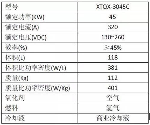 QX-3045C燃料电池发动机系统(见图31)为武汉雄韬氢雄燃料电池科技有限公司面向客车、商用车开发的第一代燃料电池发动机系统,产品体积118L,额定电流320A,额定电压130-260V,体积比功率密度381W/L,质量比功率密度401W/kg(详情见性能参数)。该系统高度集成、耐久性好、稳定性强,具有设计合理、功率密度高、启动速度快、环境适应性强、维护便捷等优点。