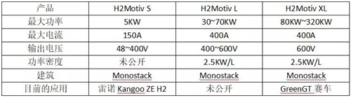 目前,Symbio提供了H2Motiv系列动力系统,包括H2Motiv S\H2Motiv L\H2MotivXL(具体信息见下表),并且掌握了燃料电池电堆毗邻的三个关键氢动力系统管路。