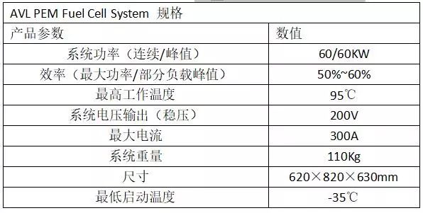 在2019年日本国际氢能及燃料电池展会(FC EXPO)上,AVL展出了其PEM Fuel Cell System(见图40)。该系统采用模块化方法构建,可轻松集成到多个应用程序中,以降低开发成本。(具体参数见下表)