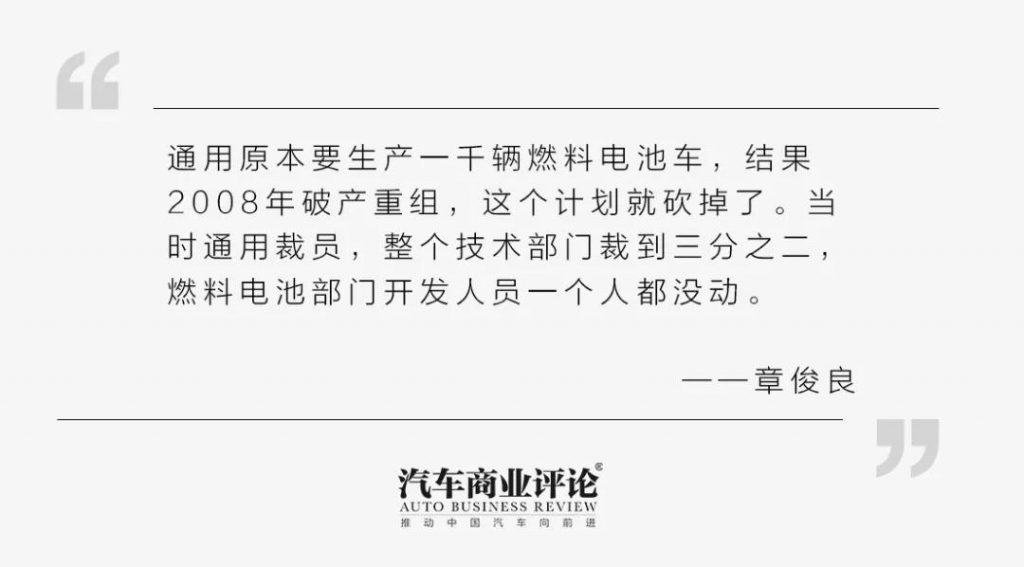 第一春当时,我正好在美国,在通用汽车公司开发燃料电池。当时通用原本要生产一千辆燃料电池车,结果2008年破产重组,这个计划就砍掉了。当时通用裁员,整个技术部门裁到三分之二,燃料电池部门开发人员一个人都没动,这是一个背景。