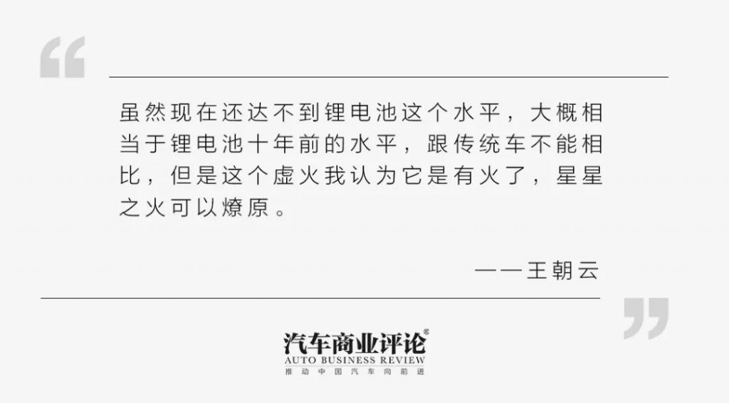 虽然现在还达不到锂电池这个水平,大概相当于锂电池十年前的水平,跟传统车不能相比,但是这个虚火我认为它是有火了,星星之火可以燎原。