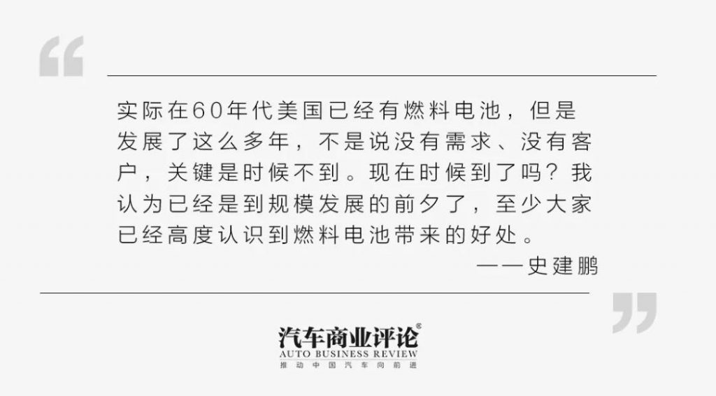 分析下来,实际燃料电池很早就有了,在60年代美国已经有燃料电池,但是发展了这么多年,不是说没有需求,不是说没有客户,关键是时候不到。反过来说,现在时候到了吗?我认为现在已经是到规模发展前夕了,至少大家已经高度认识到燃料电池带来的这些好处,清洁、环保,成本等各方面已经能够接受了。