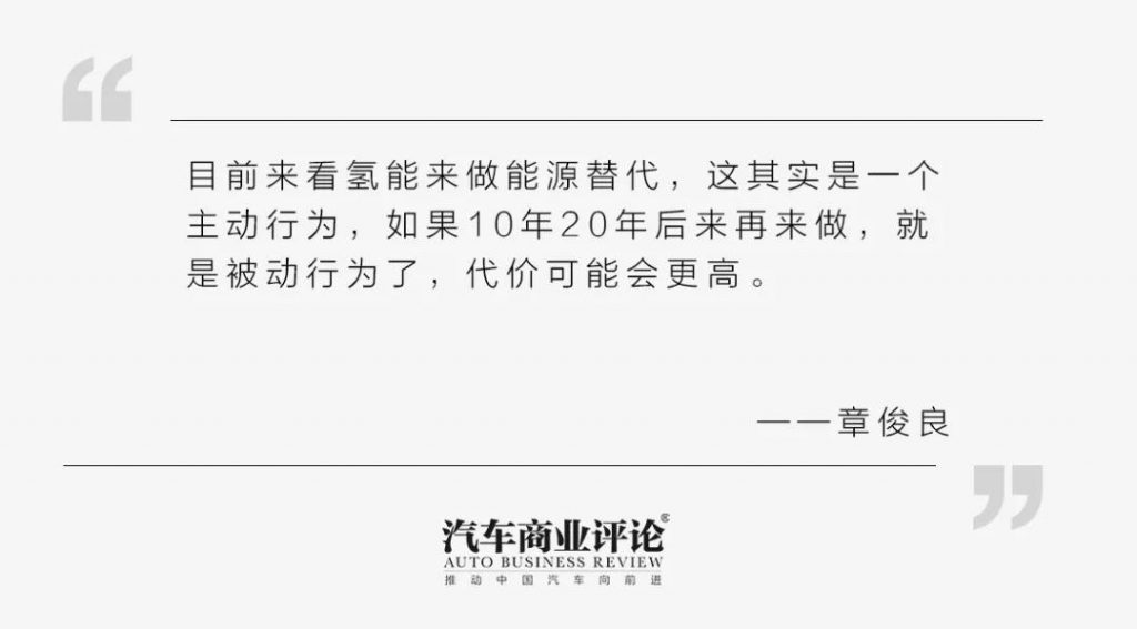 还有,氢能在目前来看,如果是来做一个能源替代,它其实是一个主动的行为,如果说等到10年、20年之后再来做,可能就是个被动行为了,被动行为可能代价就会更高。
