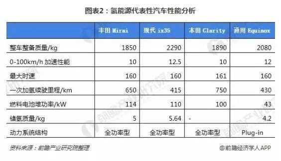 氢燃料汽车车型性能对比,丰田Mirai性能最优