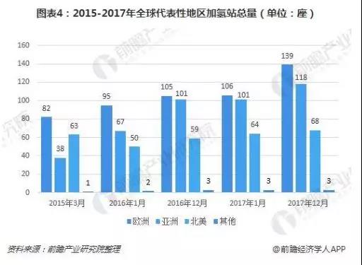 目前,全球范围内欧洲、美洲和亚洲的加氢站的建设数量不断增加。2016年后以日本和中国为代表的亚洲加氢站的建设数量不断增加。