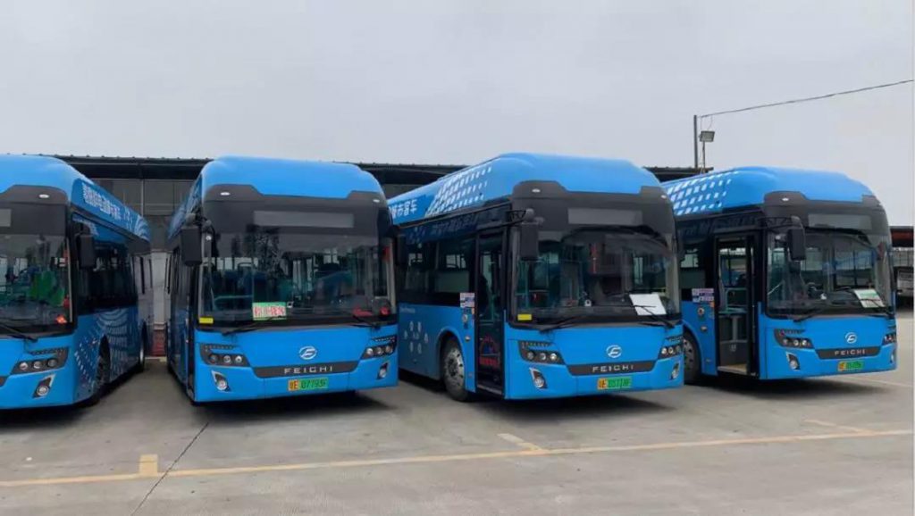丹灶站服务的物流车由附近工业园的爱德曼氢能提供燃料电池系统,公交车依然是飞驰汽车所生产。