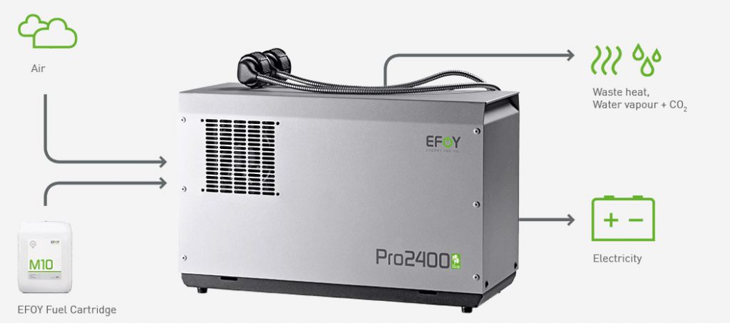 此外,该公司生产的EFOY燃料电池是基于直接甲醇燃料电池技术的一种燃料电池,他们通过一种环保型催化工艺使甲醇转化为电能,无需任何中间步骤。 EFOY燃料电池发电机可随时供应电力,并且其蓄电能力是太阳能系统的3-10倍。