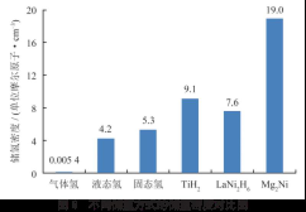 安全、高效的储运氢技术是实现氢能实用化的关键[6-7]。氢能的存储方式主要包括低温液态储氢、高压气态储氢、固态储氢和有机液态储氢等,不同的储氢方式具有不同的储氢密度,其中气态储氢方式的储氢密度最小,金属氢化物储氢方式的储氢密度最大(图 8)。