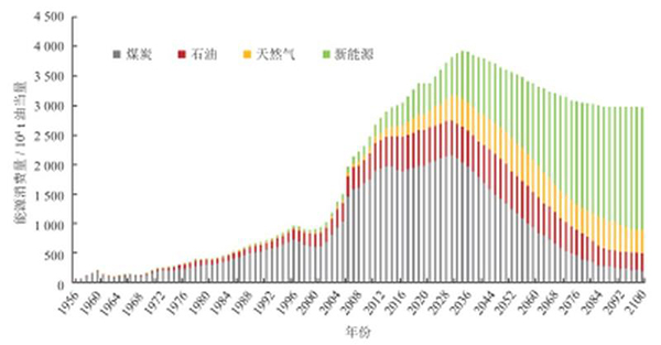 到 2100年前后,有可能依靠新能源等实现国家“能源自主”,化石能源占一次能源消费结构的比例下降至 30%,非化石能源占到 70%,实现二者的地位转换(图 11)。
