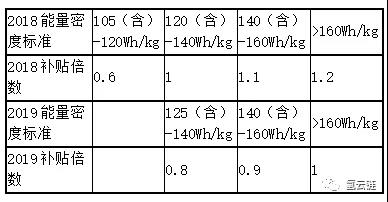 同时最低能量密度要求从115Wh/kg上升到125Wh/kg,并对补贴系数进行了调整。