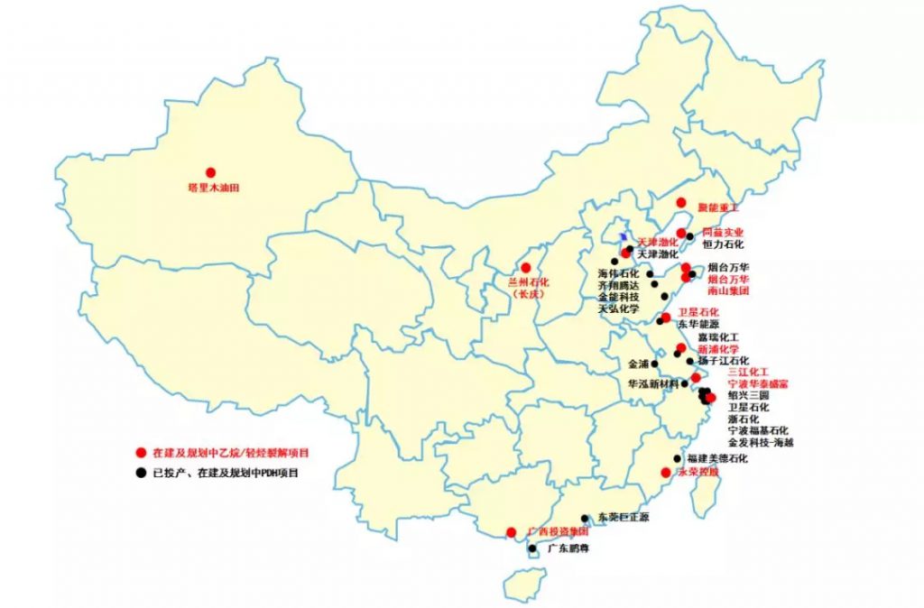 与市场的普遍认知不同,氢云链认为随着北美页岩油气革命之后国内碳三和碳二行业生产路线发生了变革性的变化:考虑在建和规划中的产能,未来国内PDH(丙烷脱氢)产能将达 915 万吨产能,而规划中的乙烷裂解产能达 1460 万吨。