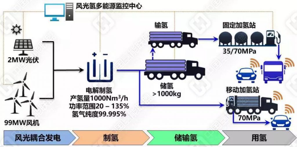 据资料显示,项目预期建成6MW/2MW以上风/光互补项目,建成1200Nm3/h电解水制氢站,建成35MPa/70MPa固定式加氢站、70MPa移动式加氢站以及风光氢多能综合监控中心。该项目成果将填补我国MW级大规模风光耦合制-储-用氢系统运营示范工程空白,推进我国可再生能源与氢能源产业链健康发展。