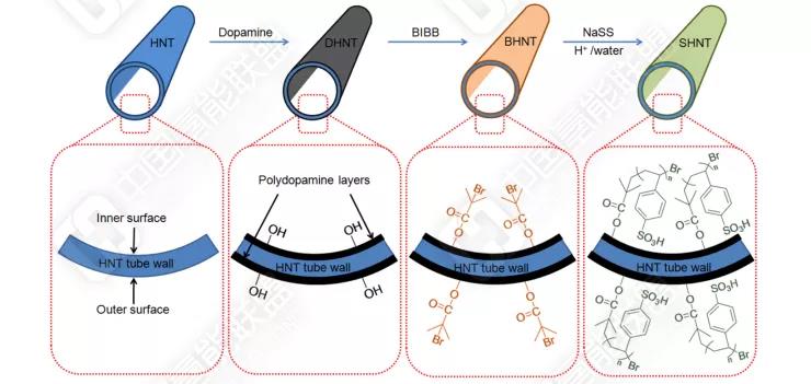 在质子交换膜方面,华北电力大学通过对天然可获得的成本低廉的埃洛石纳米管进行改性处理,接枝上具有质子传导能力的磺化基团并掺杂至聚合物基体中,发现低湿度下膜的质子传导和保水性得到很大改善,同时甲醇渗透问题得到有效改善。