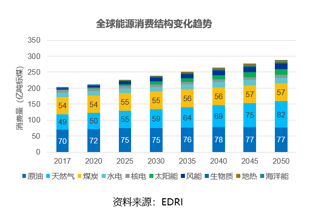 到本世纪中叶,全球能源供需将形成煤炭、石油、天然气以及非化石能源“四分天下”格局,非化石能源是相对清洁的能源,非化石能源地位上升,将改变制氢结构。
