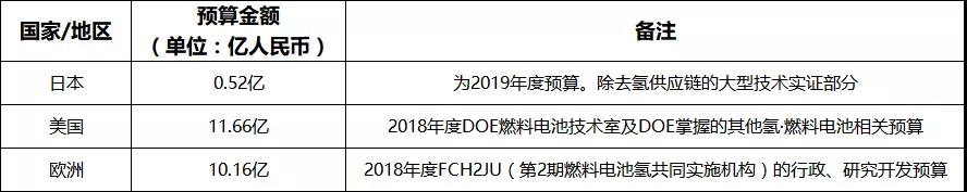 另外,关于日本、美国、欧洲对于氢能和燃料电池领域相关技术开发的预算情况NEDO也做了公布,具体如下图所示。
