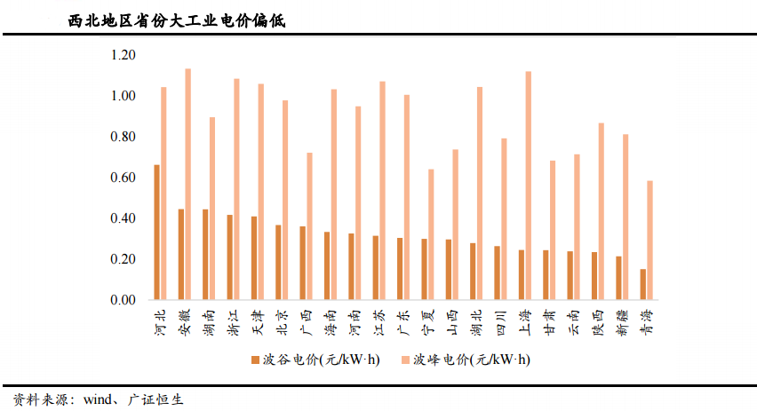 西北地区大工业电价偏低。