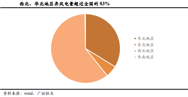 西北地区弃风弃电量居首位。
