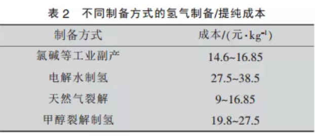 再从氢气的成本出发进行分析。目前氢气加注到车的成本主要分为三部分:一是制备/提纯成本,二是运输成本,三是站内成本。不同制备方式的制备/提纯成本如表2所示。