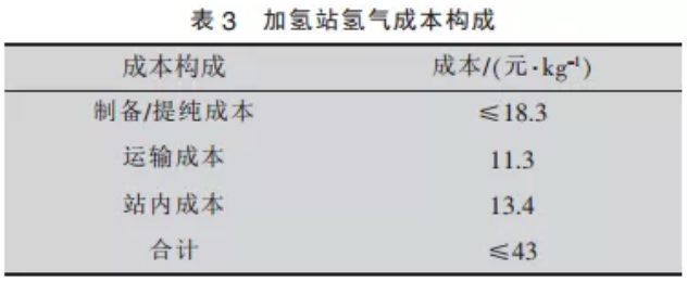 从表3可以看到,在未考虑加氢站本身利润的情况下,制备/提纯成本需控制在18.3元/kg以内。