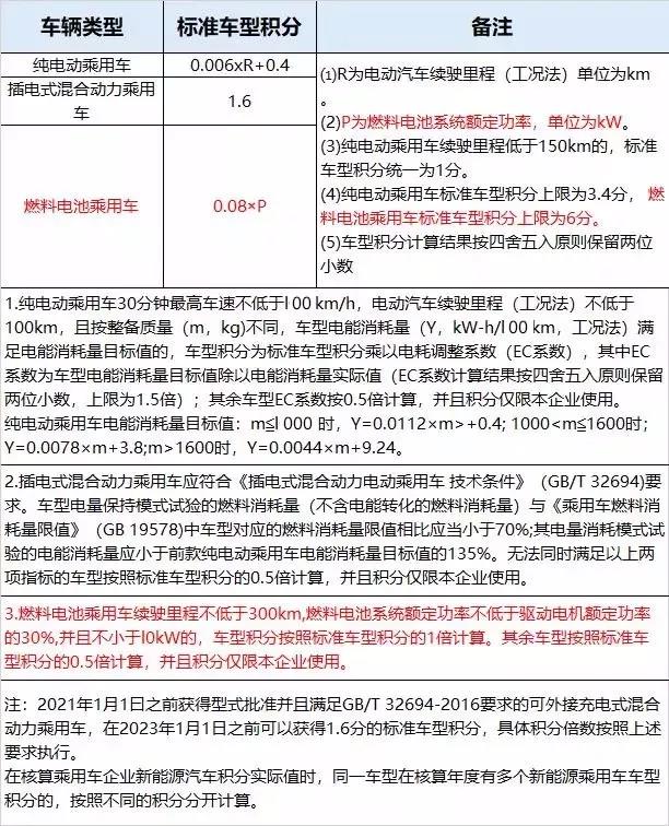 1、标准车型积分从0.16×P变成0.08×P(注:P为燃料电池系统额定功率,单位为kW)。2、标准车型积分上限从5分变成6分。