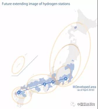 日本人口密度较高,四分之三是山区,人口稠密的地区的密度约为每平方公里340人或每平方英里875人这一平均人口密度的四倍。东京、大阪和名古屋这三个城市的人口占日本1.27亿总人口中的一半还多。东京和大阪相距约500公里(300英里),名古屋大约在中点。名古屋市距丰田汽车创立地丰田市约40公里(25英里)。日本的第四大城市中心是福冈,位于大阪以西约300公里(200英里)处。这四个中心有超过7,000万人居住,城市之间还有数百万人口。因此,早期90%的加氢站都建设在这四个城市地区。在东京到名古屋的区间内更是建造了约三分之二的加氢站。