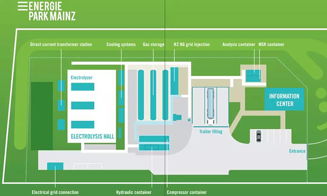 “ 美茵茨能源公园 ”项目于2012年启动,2015年建成投运,2017年正式进入商业化运营阶段,其主要目标是开发,测试和应用可再生能源电解制氢的创新技术。该项目总投资额为1,700万欧元,由林德集团与德国西门子、美因茨市政公司、莱茵应用技术大学合作开发。