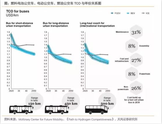 对比纯电动汽车发展历程,补贴退坡与总拥有成本下降一同出现,所以预计在国内燃料电池车市场成熟前政策补贴会持续助力发展。