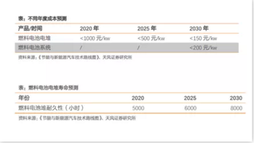 除了燃料电池系统外,随着技术的成熟与量产水平的提升,燃料电池车每车分摊的零部件基础成本和替换成本会将持续下降,零件寿命也会进一步提升。