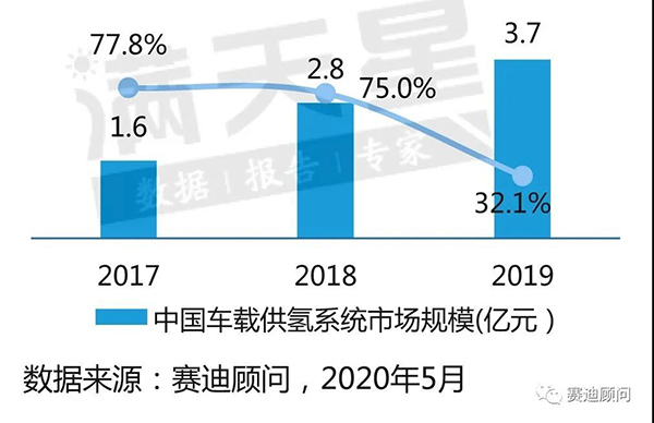 目前中国氢燃料电池车市场刚刚起步,车载储供氢系统市场规模较小,仍处于新生阶段。2019年,中国燃料电池车车载储供氢系统市场规模达到3.7亿元,同比2018年增长32.1%。