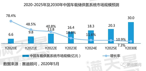 2020-2025年及2030年中国车载储供氢系统市场规模预测