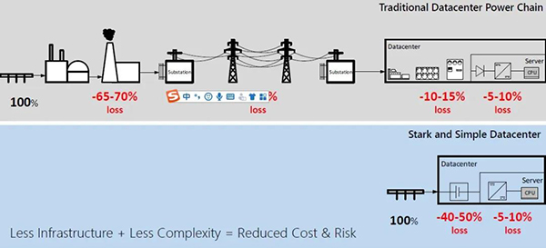 微软的愿景是将燃料电池作为主要动力,而不是简单的备用电源。微软已经开始使用燃料电池来替代对大型、昂贵的备用柴油发电机的需求,将燃料电池直接集成到西雅图数据中心电源体系结构中。这种分布式电源架构可将其数据中心的能效提高一倍,同时还能降低成本并提高可靠性。2017年,康明斯和微软宣布成立高级能源实验室,评估SOFC作为未来数据中心的电源是否具有提高效率、减少排放和削减成本的潜力。