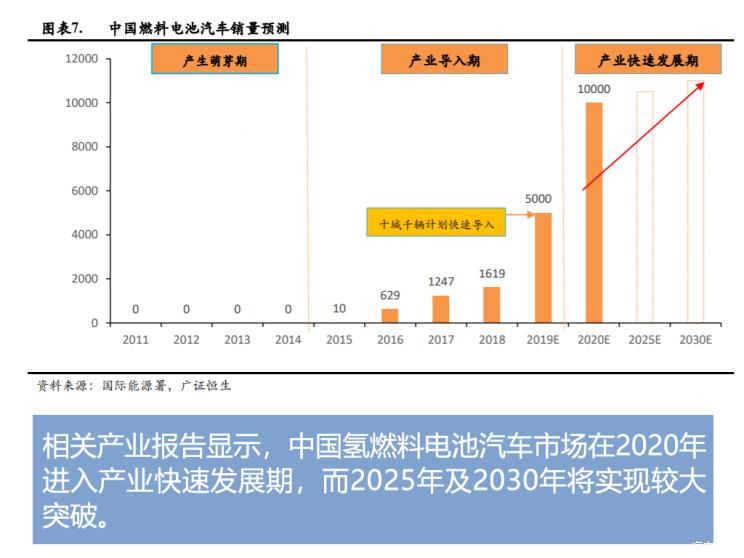 根据毕马威此前发布的报告显示,2020年氢燃料电池汽车产量将出现爆发性增长;2025年燃料电池技术有望实现突破,成本将大幅下降;到2030年,中国氢燃料电池汽车产销量将达数十万辆。无独有偶,广证恒生研究所此前也发布的一份产业报告显示,中国氢燃料电池汽车2020年将达到10000辆的规模,从2020年开始中国氢燃料电池汽车市场将迎来产业快速发展期。也就是说,从市场空间来看,本土作战的中国车企更具优势。