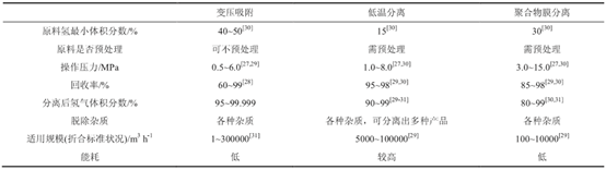 综上,不同应用场合对氢气纯度、杂质含量需求不同,在选用氢气的纯化方法时,根据原料气和产品气的规格和条件,选取经济适用的一种或多种方法进行提纯。