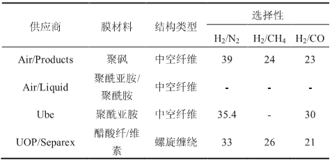 表4 氢气分离用的商业聚合物膜主要特性