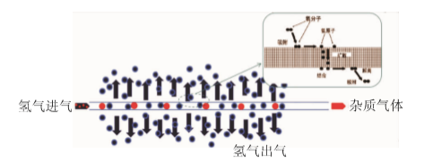 金属氢化物法是利用储氢合金可逆吸放氢的能力提纯氢气。在降温升压的条件下,氢分子在储氢合金(稀土系、钛系、镁系等合金)的催化作用下分解为氢原子,然后经扩散、相变、化合反应等过程生成金属氢化物,杂质气体吸附于金属颗粒之间。当升温减压时,杂质气体从金属颗粒间排出后,氢气从晶格里出来,纯度可高达99.9999%。金属氢化物法同时具有提纯和存储的功能,具有安全可靠、操作简单,材料价格相对较低,产出氢气纯度高等优势,可代替钯膜纯化法制备半导体用氢气,但是金属合金存在容易粉化,释放氢气时需要较高的温度,且氢气释放缓慢,易与杂质气体发生反应等问题。