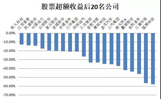 其中股票持有期超额收益率前20名的公司如下图所示: