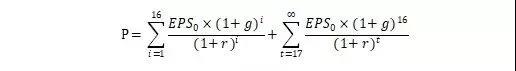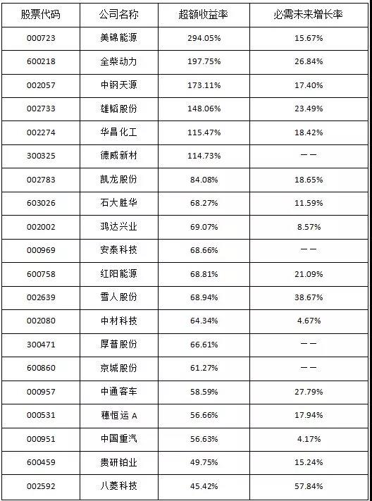 其中(——)表示公司目前亏损,无法估计未来增长率;可以发现低于参考标准16.8%的仅有6家。这意味着其它公司在目前收益基础上,即便以较乐观的增长预期16.8%持续增长16年,仍然无法支撑当前股价。