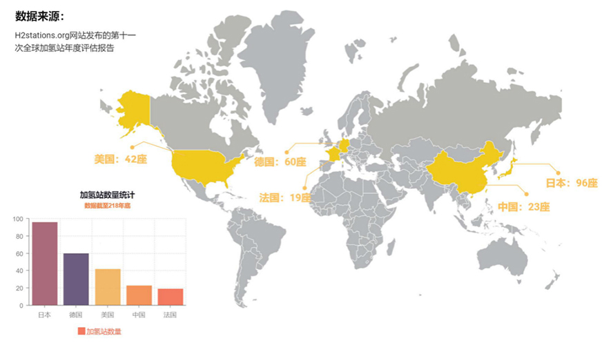 全球五大国家加氢站数量对比图 制图:潘秋月