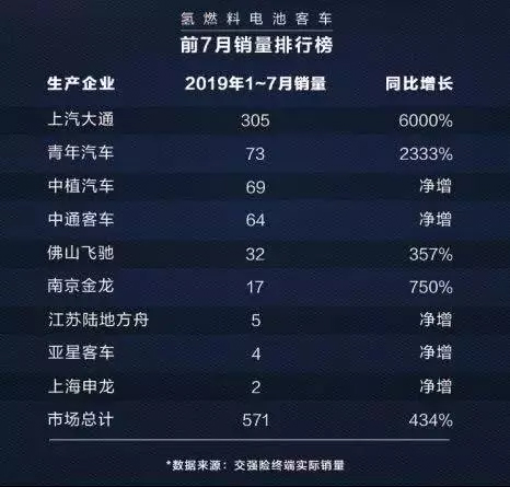 氢燃料电池车1-7月销量数据