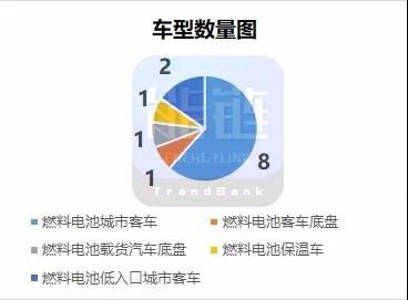 从类型上看,本次公示的13款燃料电池产品里面燃料电池客车8款,燃料电池客车底盘1款,燃料电池载货汽车底盘1款,燃料电池保温车1款、燃料电池低入口城市客车2款。