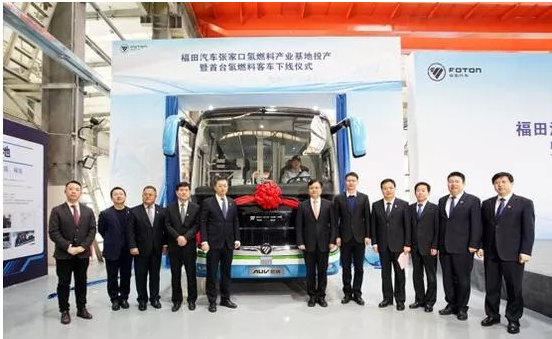 1月19日,以“氢能助力 科技冬奥”为主题的福田汽车张家口氢燃料产业基地投产暨首台氢燃料客车下线仪式在张家口举行。