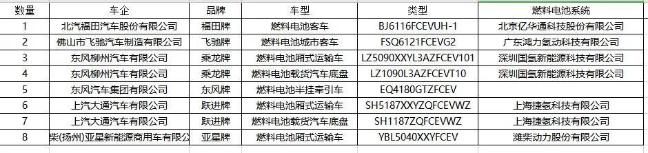 6家企业8款燃料电池车型登榜330批《道路机动车产品公告》