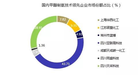 根据TrendBank研究与顾问机构数据显示,国内甲醇制氢技术成套设备领先企业有7家。其中,四川亚联高科装置量最多,天采科技次之,装置大型化属华西。