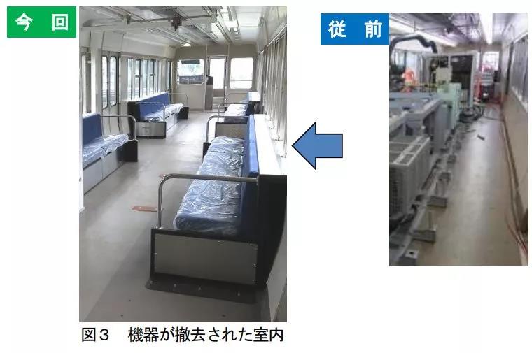 该列车将客舱内搭载的主要机器移设到地板下,通过增加燃料电池??榈氖涑雒芏壤此跣∩璞傅某叽?。与普通火车一样,在列车的的车厢中安装了长座位。