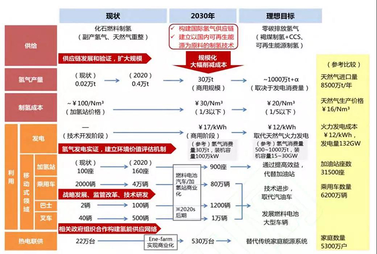 40多年来,日本不断完善战略规划、路线图和政策法规,引导政府部门、企业和研究机构大力推进氢能发展利用。