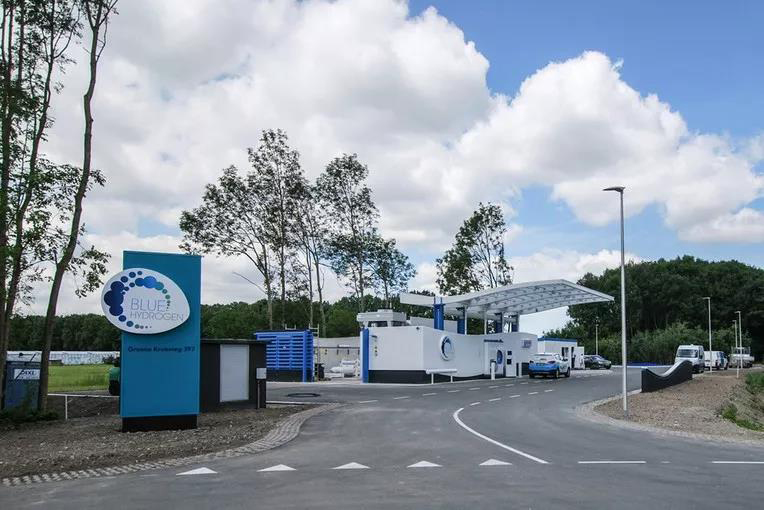 (作者考察的荷兰加氢站,法液空蓝色氢气计划供氢)