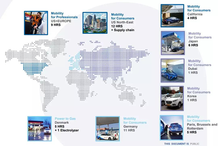 蓝氢:法液空发起Blue Hydrogen计划,旨在逐步使其用于能源应用的氢气生产脱碳。法液空承诺到2020年通过沼气重整,可再生能源电解水以及在天然气制氢过程中增加CCS等无碳工艺提供至少50%的氢气,目前,蓝氢计划所产氢气主要供应其所属加氢站,这在欧洲辨识度非常高。